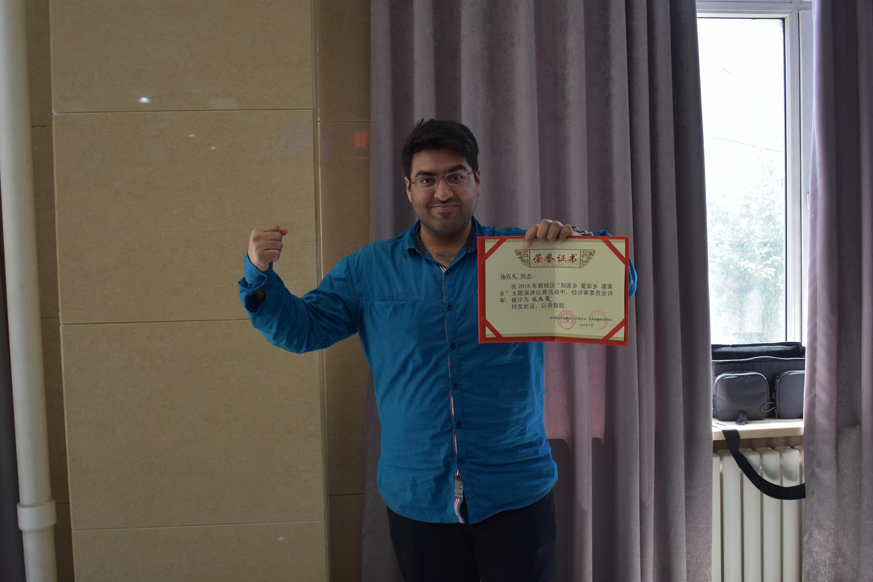 活動(dòng)得到了全區(qū)機(jī)關(guān)、企事業(yè)單位廣大青年職工的積極響應(yīng),我公司選送了實(shí)習(xí)員工福載禮,一位來自巴基斯坦的留學(xué)生參加了比賽。經(jīng)過預(yù)賽的激烈角逐,福載禮與其他13名選手從初賽中脫穎而出,進(jìn)入決賽。他們們從不同角度和不同層面闡述了對(duì)撫順的熱愛之情。他們用如火的激情表達(dá)投身家鄉(xiāng)建設(shè)的決心;他們用不忘初心的使命踐行新時(shí)代新青年的擔(dān)當(dāng)。他們深情地講述一個(gè)個(gè)生動(dòng)真實(shí)的故事,對(duì)“知家鄉(xiāng) 愛家鄉(xiāng) 建家鄉(xiāng)”做出最好的詮釋。他們的精彩演講不時(shí)贏得評(píng)委和現(xiàn)場(chǎng)觀眾的陣陣掌聲。