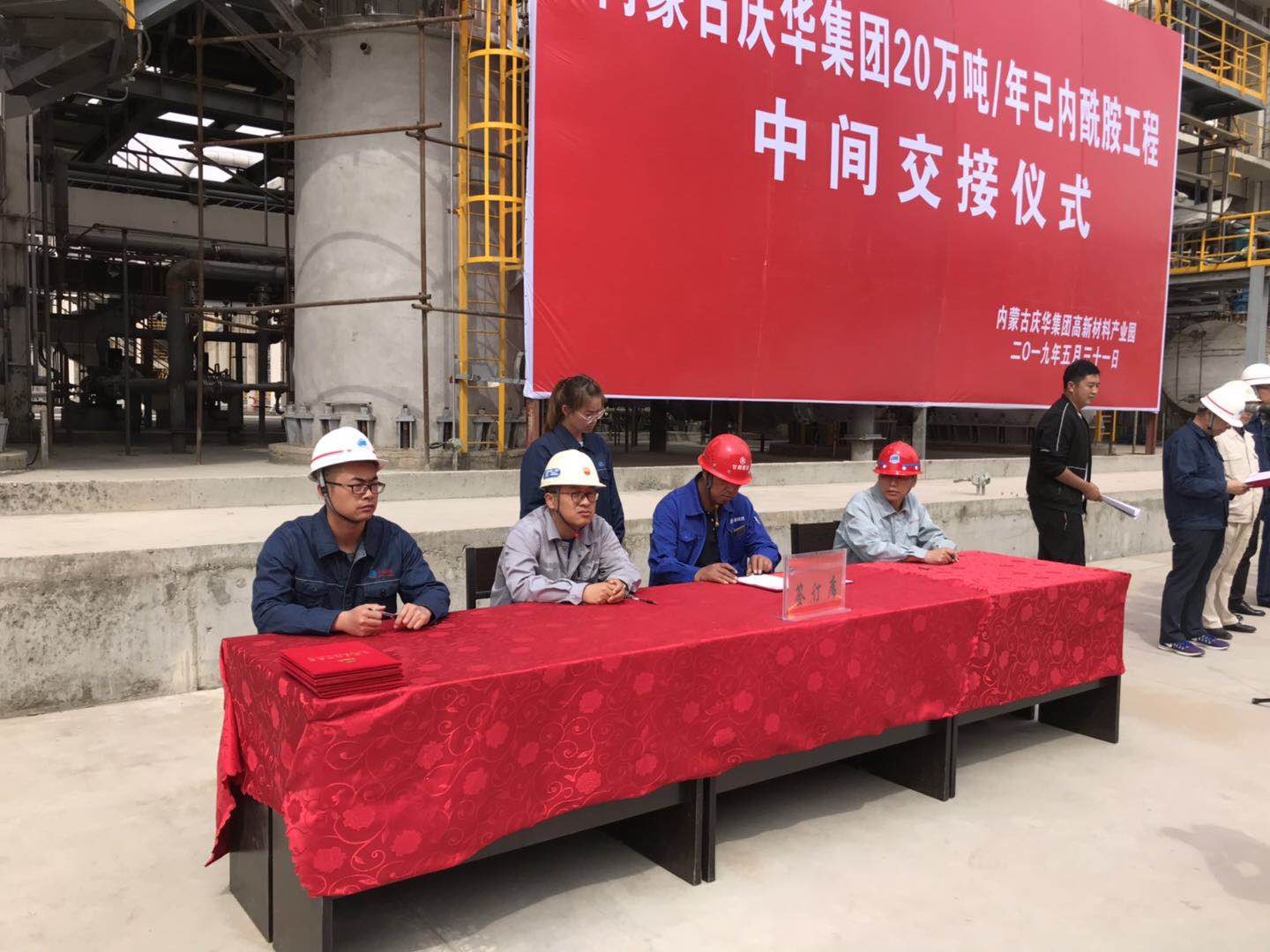 5月31日上午10:00內(nèi)蒙古慶華集團(tuán)20萬噸/年己內(nèi)酰胺工程進(jìn)行了中間交接,遼寧誠實(shí)騰格里項(xiàng)目部總監(jiān)孫典在交接儀式上進(jìn)行了簽字。交接的部分裝置有:精制、肟化、硫銨車間。