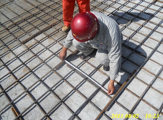 土建監(jiān)理現(xiàn)場檢查壓縮機廠房筏板基礎(chǔ)鋼筋尺寸