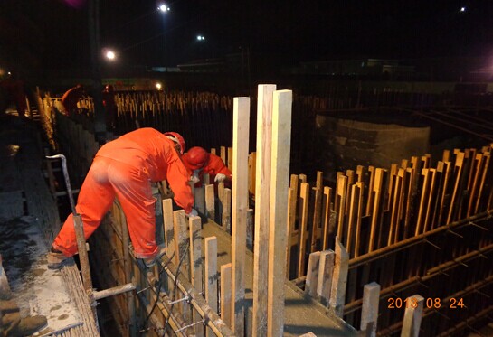 壓縮機廠房基礎(chǔ)環(huán)墻混凝土夜間澆筑施工現(xiàn)場