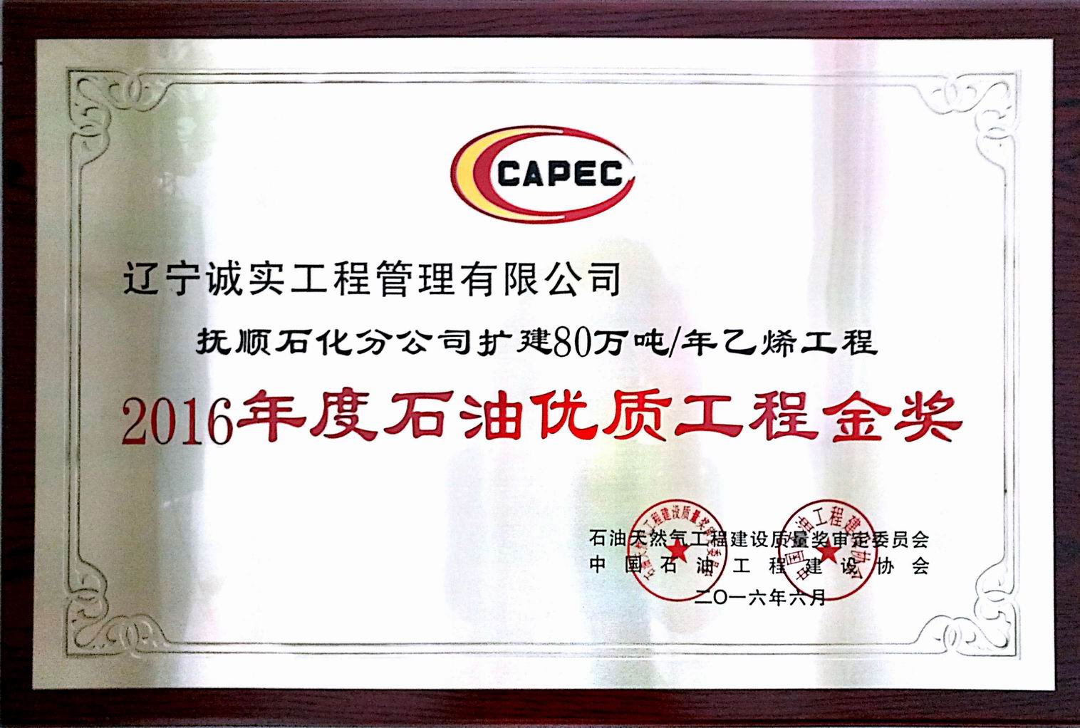 2016年石油優(yōu)質(zhì)工程金獎(jiǎng)(撫順石化...