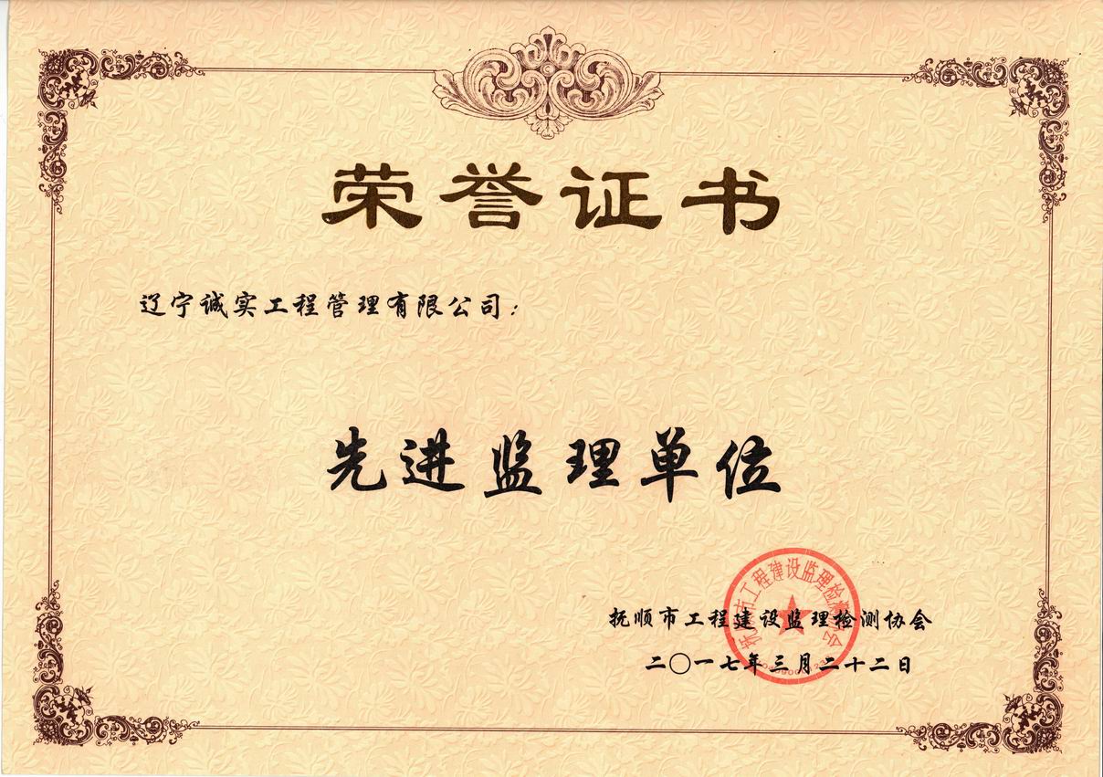 2017年撫順市先進監(jiān)理單位