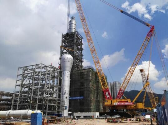 圖為4000噸履帶吊在吊裝LLDPE裝置反應器