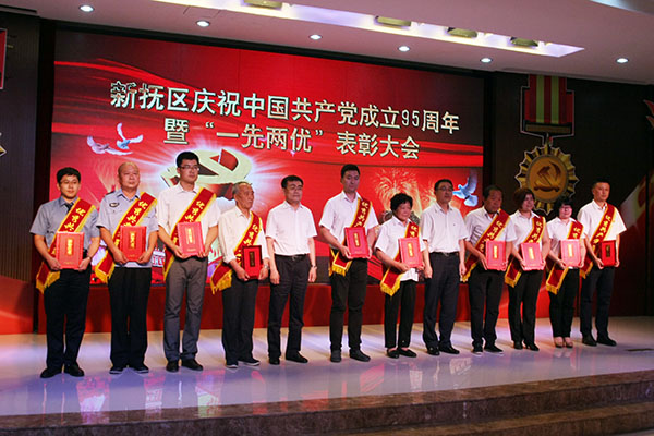 6月30日下午,新?lián)釁^(qū)召開慶祝中國共產(chǎn)黨成立95周年表彰大會(huì),對(duì)做出突出貢獻(xiàn)的先進(jìn)黨組織,優(yōu)秀共產(chǎn)黨員和優(yōu)秀黨務(wù)工作者進(jìn)行表彰。我公司被授予“先進(jìn)黨組織”榮譽(yù)稱號(hào),任潤東被授予“先進(jìn)黨務(wù)工作者”榮譽(yù)稱號(hào),尋藍(lán)春、謝淑蘭被授予“優(yōu)秀共產(chǎn)黨員”榮譽(yù)稱號(hào)。