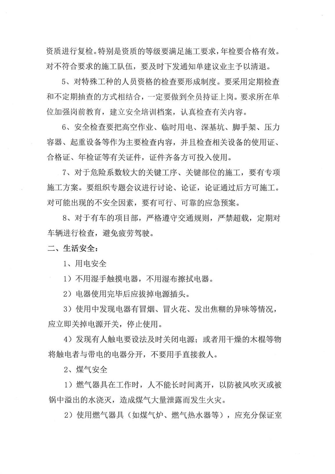 關(guān)于加強(qiáng)公司生產(chǎn)安全、生活安全的通知--工程管理部3號(hào)文件
