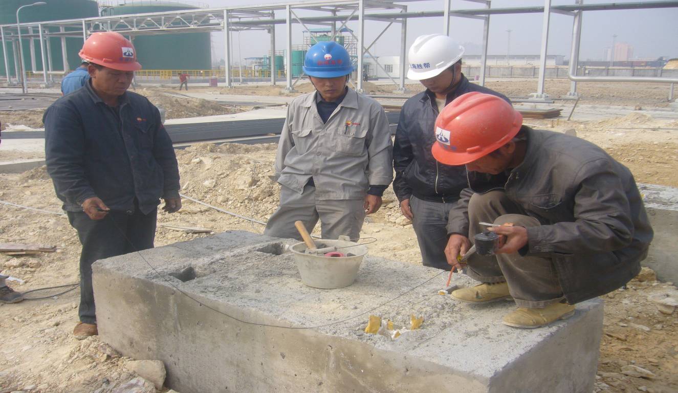 監(jiān)理、總包、施工單位現(xiàn)場(chǎng)進(jìn)行泵基礎(chǔ)交接