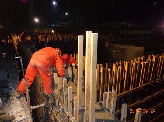 壓縮機廠房基礎(chǔ)環(huán)墻混凝土夜間澆筑施工現(xiàn)場